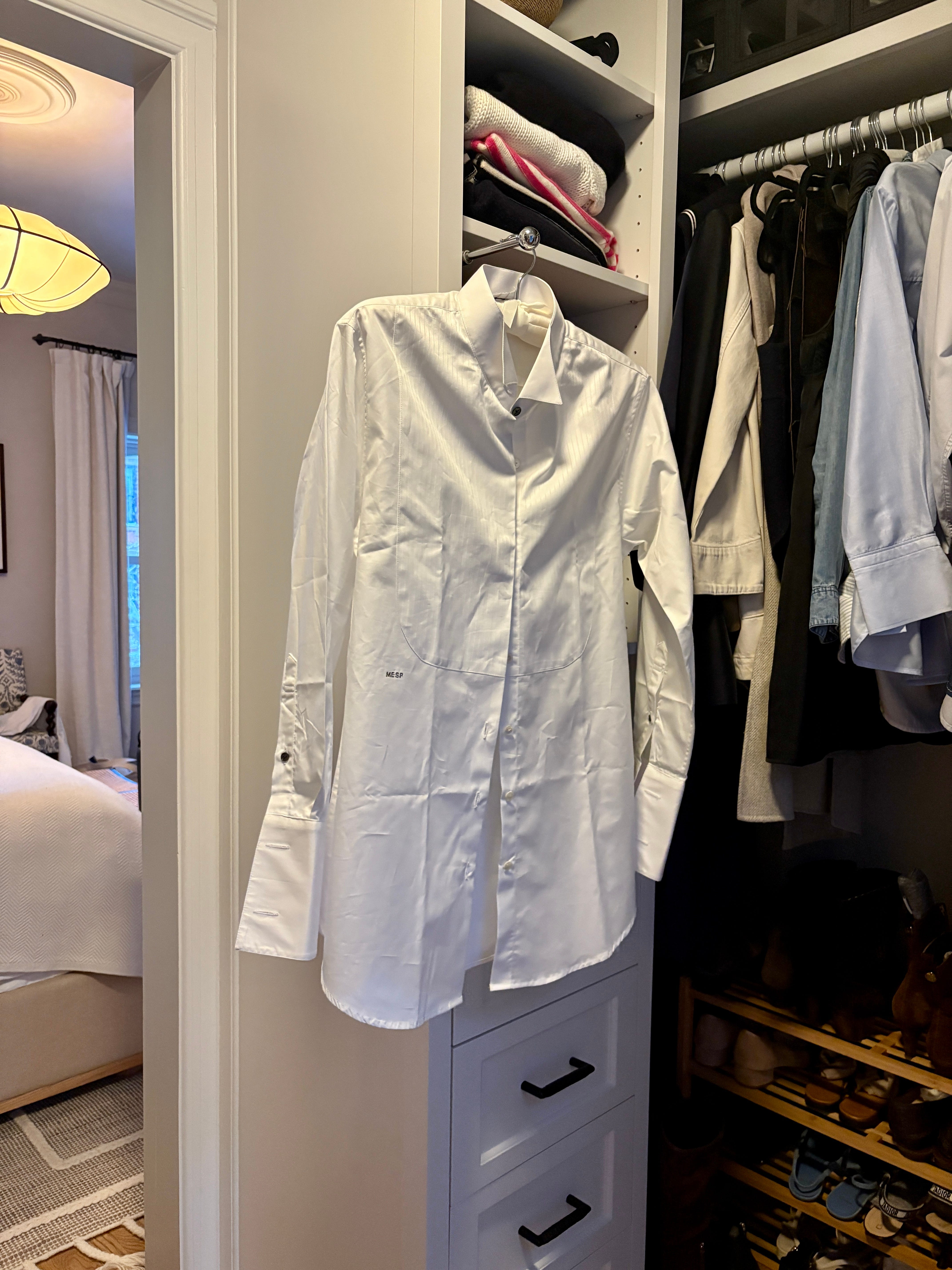 Also, here are some things I use and love in my closet for organization and optimal functioning: These boot inserts that sit flush along the wall when you’re not using them. These slim hangers for most things, and these padded hangers for anything delicate. These shoe boxes with clear windows that I really love and use for all my heels and nicer shoes (currently 25% off). And this shoe rack for my day-to-day shoes. A great step stool goes a long way for use as a ladder or a place to lay out an outfit or some clothes you haven’t put away and I’ve had and loved this stool for years (currently 20% off). And my absolute favorite thing in my closet is this “bellman’s hook” - it’s retractable and really worth installing even if you’re in a rental! You can read about my new steamer that I’m loving, here.