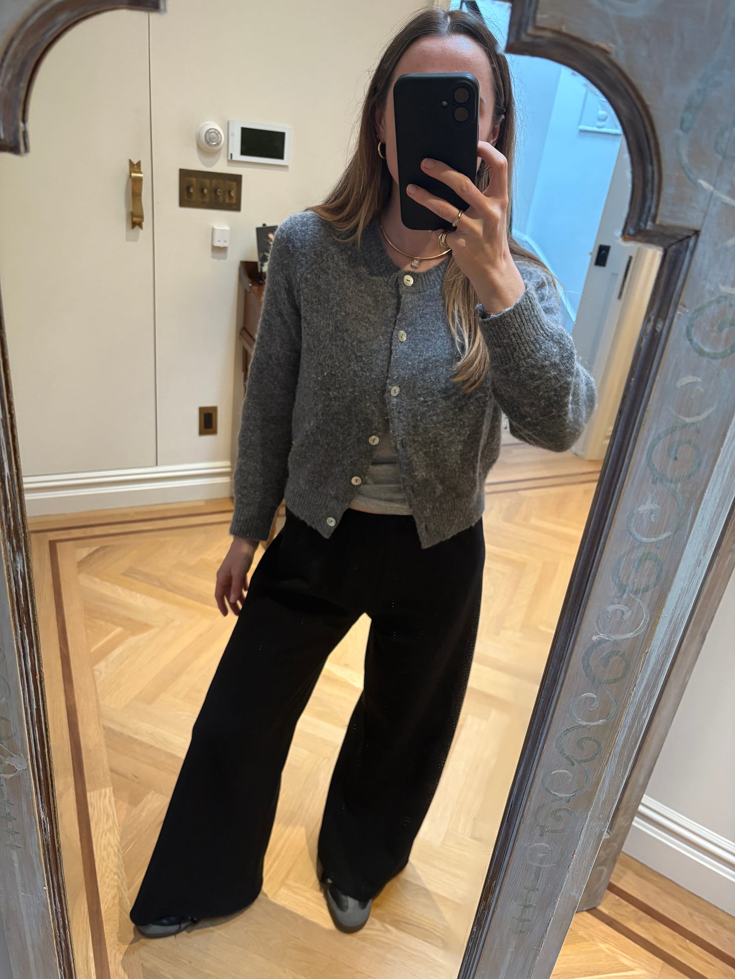 These pants are amazing. My sister and my mom both had a pair when they visited me in the fall and I liked the way they looked on both of them but when I went to try them on in the store, something about the crepe material felt cheap to me. I find satin, the other material they offer, to be really tricky to wear - both functionally and in its form so I didn’t go for those either. Then, my mom visited again and I really loved the pants, again, so I went back to the store, tried them on, and realized that I actually loved them (in black specifically). They are kind of thicker, the opposite of a silk or satin pant, and I think that makes them more flattering and easier to wear, less fussing required. I like that the rise on them is shorter, which works well for shorter people like me (I’m 5’4) or for short torso people, also me. I had to get them hemmed quite a bit. They are just a really easy pant that I think works as well for a day at work full of client appointments as it does for time at the park or hanging at home with my toddler. A lot of pants want to claim this versatility, and these ones actually can. I will say that in writing this I learned you are supposed to hand wash or dry clean them :( I have not had to do either yet but if, in fact, I do need to, these will rank much lower on that “do it all” scale. I’ll still love them though, mostly because they just feel good.